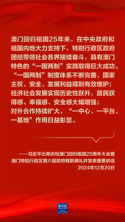 | 习近平在庆祝澳门回归祖国25周年大会暨澳门特别行政区第六届政府就职典礼上的讲话 |