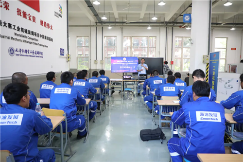 | 9月25日至27日,由中海油能源发展装备技术有限公司(以下简称“装备技术公司”)工会主办、装备技术公司人力资源部协办、装备技术公司天津综合服务中心和天津市机电工艺技师学院承办的2025年“海河工匠杯”技能大赛—中海油能源发展装备技术有限公司职业技能竞赛在学院圆满举办。  大赛旨在深入贯彻习近平总书记关于技能人才工作的重要要求,积极响应国家关于加强技能人才队伍建设的号召,进一步提升广大职工的职业技能水平,充分发挥新时代产业工人在推动企业高质量发展中的主力军作用,激励青年一代走技能成才、技能报国之路。 大赛开幕式  学院党委委员、纪委书记刘英华致欢迎辞。学院作为首批国家级示范校、国家高技能人才培训基地,始终紧扣天津“1+3+4”现代产业体系,坚持“培养高技能人才、服务产业发展”的办学理念,深耕机电类技能人才培养。希望以大赛为纽带,深化校企在人才培养、技术交流等领域合作,共同为天津“十项行动”与海洋能源事业高质量发展培育更多的大国工匠。  装备技术公司党委副书记、工会主席刘连进致辞并宣布开幕。本次技能比武既是贯彻落实国家人才战略、践行工匠精神的具体行动,也是检验队伍、选拔人才、激发创新的重要平台。此次以“3+1+X”赛项模式创新办赛,首次将“智能化设备操作员”纳入竞赛体系,助力公司以智能化、数字化赋能装备技术升级和高质量发展。希望以此次竞赛为契机,将竞赛成果转化为实际工作中的创新动能,推动公司“两大产业”转型取得新突破。 裁判代表和选手代表宣读比赛规则并宣誓。    赛前培训 此次大赛开设了工业机器人系统操作员、数控车工、维修电工、机修钳工4个赛项,74位参赛选手同台竞技、切磋交流。为保障大赛顺利进行,学院精心组建专业团队,按照国赛标准完成赛场布置、设备调试与服务保障,全力营造公平公正、便捷高效的竞赛环境。同时,学院对每个赛项开展了赛前培训,让参赛选手不仅对赛项规则和要求有了更清晰的认识,还提升了自身的专业技能和应变能力,为在比赛中取得优异成绩奠定基础。