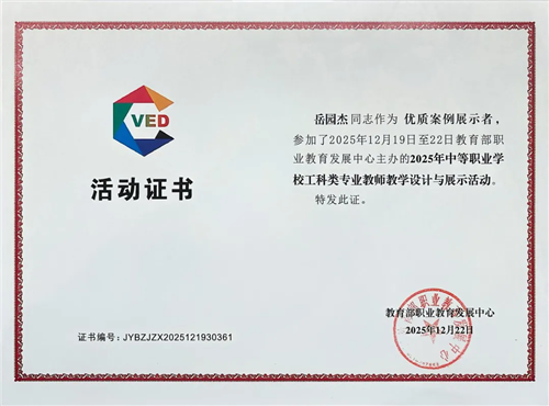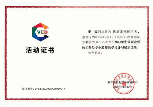 近日,由教育部职业教育发展中心主办的2025年中等职业学校公共基础课、农医类及现代服务类、工科类专业教师教学设计与展示活动圆满落幕,学院选派5位教师参赛并全员斩获佳绩,4位教师荣获“优质案例展示者”称号,1位教师荣获“案例展示者”称号。荣获“优质案例展示者”称号的作品将在国家“智慧职教”平台进行展示推广。 本次活动由教育部职业教育发展中心主办、高等教育出版社承办,是目前全国职业教育课堂教学领域规格最高、影响力最广的教学赛事之一,集中展示了新时代职业教育教学改革的最新成果。活动以“提升教师教学能力,促进教师专业发展”为主题,通过说课展示、教学设计汇报、微课分享等多个环节,全面考查教师的教学能力与创新水平。 在公共基础课教师教学设计与展示活动中,学院参赛教师刘念伊、黄雪莹通过天津市选拔,分别作为英语学科和劳动教育学科教师代表参赛,刘念伊老师以作品《Safety Signs and Machine Instructions at Workplace》获评“优质案例展示者”称号,黄雪莹老师以作品《精巧组装-工匠之美》获评“案例展示者”称号。 ![]() ![]() ![]() ![]() 在农医类及现代服务类专业教师教学设计与展示活动中,学院参赛教师申慧圆通过天津市选拔,作为医药卫生专业教师代表参赛,以作品《为老年人清洁口腔》获评“优质案例展示者”称号。 ![]() ![]() 在工科类专业教师教学设计与展示活动中,学院参赛教师岳园杰、李策通过天津市选拔,分别作为计算机专业教师代表和电工电子专业教师代表参赛,岳园杰老师以作品《冒泡排序法在智能电量监控平台中的应用》荣获“优质案例展示者”称号,李策老师以作品《让生活更快捷-蓝牙模块的安装与调试》荣获“优质案例展示者”称号。 ![]() ![]() ![]() ![]() 此次参赛,既是学院教师教学能力的生动彰显,更是学院长期深耕教师队伍建设、深化教育教学改革、狠抓人才培养质量取得的丰硕成果。参赛教师在同台竞技中切磋交流、互学互鉴,有效拓宽了教学视野,汲取了先进教育理念与实践方法,实现了以赛促教、以赛促学的良性循环。学院将以此为契机,持续鼓励教师积极创新教学模式与路径,不断锤炼教学本领、提升专业素养,为培养更多高素质技术技能人才、赋能区域职业教育高质量发展贡献力量。 |