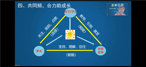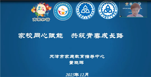 为深入学习贯彻《中华人民共和国家庭教育促进法》,深入落实立德树人根本任务,本学期,学院组织开展“赋能教师幸福家庭 携手家长共育成长”系列活动。继前期全体班主任赋能培训后,元旦假期前,学院组织开展第二期家长赋能讲座,特邀家庭教育指导中心高级指导师董晓辉进行线上专题讲座,以专业指导为家长解惑,推动家校协同育人走深走实。