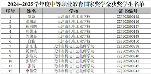 | 学院12名学生荣获2024—2025学年度中等职业教育国家奖学金 |