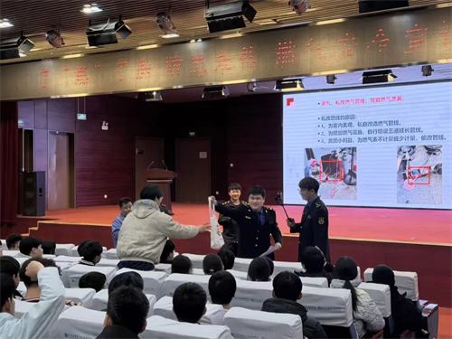 此次宣讲打破传统说教模式,融合情景演绎、案例警示、专业讲解与互动问答,兼具趣味性、专业性与实操性。综合行政执法支队宣讲团通过小品演绎的形式开展安全知识讲解,将燃气安全要点融入生动的情景演绎中。宣讲团紧扣“人人讲安全、个个会应急”主题,现场播放燃气事故警示教育片,通过真实案例为同学们敲响安全警钟。同时,围绕燃气安全常识、泄漏常见诱因、不安全用气行为及隐患、用气安全注意事项等内容,结合学生学习生活实际进行细致讲解,传授泄漏自查、应急处置等实用技巧。宣讲内容贴近生活、针对性强,确保学生听得懂、学得会、用得上。在互动问答环节中,现场气氛活跃,同学们踊跃抢答,在积极互动中巩固所学知识。