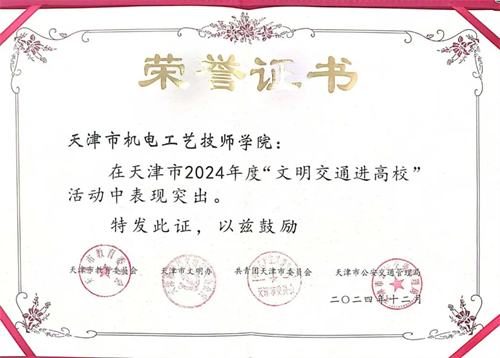 近日,在由天津市教育委员会、天津市文明办、共青团天津市委员会、天津市公安交通管理局联合组织开展的“文明交通进高校”活动中,学院表现突出获得表彰。