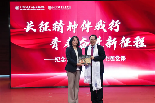 今年是中国共产党成立105周年,是“十五五”规划开局之年和红军长征胜利90周年,也是学院建校50周年,具有特殊的历史意义。值此重要历史交汇点,4月21日,学院联合天津理工大学山之歌合唱团举办“长征精神伴我行 青春奋进新征程”纪念长征胜利90周年主题党课,各二级学院党支部书记、思政教师、党员骨干教师,以及“尖刀连”学生干部、优秀团员代表等450人参加活动,进一步引导广大青年在新时代传承践行伟大长征精神,勇担时代使命,扎实推进大思政课建设走深走实。学院党委书记王千文出席活动并讲话。 ![]() 王千文书记向给予此次活动极大支持的天津理工大学关工委致以衷心的感谢,向山之歌合唱团的到来表示热烈的欢迎。她讲到,新时代的长征路,既是实现中华民族伟大复兴的壮阔之路,也是学院高质量内涵式发展的攀登之路,更是同学们德技并修、技能报国的奋进之路,一要在学习伟大长征精神中坚定“革命理想高于天”的信仰之心,自觉把爱国情、强国志、报国行落实到每一次实训、每一堂课上;二要在践行伟大长征精神中锤炼“红军不怕远征难”的奋斗之志,以“钉钉子”精神精进技艺、追求卓越;三要在传承伟大长征精神中扛起“敢教日月换新天”的担当之责,在服务集体、奉献社会中展现新时代青年的责任与担当,努力成为德技并修的高素质技术技能人才。 ![]() 天津理工大学关工委副主任、山之歌合唱团团长李桂山以学院“我最好,我最行,我最棒”的口号为切入点,与同学们亲切互动交流,勉励同学们青春的奋斗从无捷径,只要有韧劲、肯坚持、深耕专业,必能学有所成,点滴努力终将汇聚成国家发展的磅礴力量。希望机电学子牢记初心使命,练就过硬本领,传承长征精神,在新时代奋勇争先,为民族复兴贡献青春力量。 ![]() 山之歌合唱团副团长黄兵讲授长征故事主题党课,带领师生重温长征峥嵘岁月、感悟信仰力量。他讲到,长征精神是中国共产党人红色基因的核心密码,是中华民族砥砺前行的精神火炬。他从乐于吃苦、勇于战斗、重于求实、善于团结四个方面逐一对照剖析,希望同学们将长征精神融入学习,锤炼本领、团结奋进,成长为德技并修的高素质技术技能人才。 ![]() ![]() 聆听党课后,同学们深受鼓舞、倍感振奋,纷纷畅谈心得体会。“听了这堂生动精彩的党课,我觉得长征精神不再只是课本中遥远的历史,而是可学、可用、可践行的行动指南和精神动力。”“今后我将以长征精神为指引,努力克服学习中的困难,勇于挑战、脚踏实地、团结互助,用青春与汗水走好属于我们这一代的长征路。” ![]() 活动期间,文艺展演环节精彩纷呈。山之歌合唱团团员与学院装备运维技术学院2024级高职2班魏龙程同学共同朗诵《旗帜正飘扬》,以铿锵之声传递红色信仰;山之歌合唱团演唱《把一切献给党》,信息传媒学院民族班学生带来舞蹈《藏族儿女心向党》,用艺术形式抒发爱党爱国情怀,让长征精神在文艺熏陶中入脑入心。 ![]() ![]() ![]() 山之歌合唱团团长李桂山向学院师生代表赠书,勉励青年学子技能立身、规划致远。 ![]() ![]() ![]() ![]() 学院向山之歌合唱团赠送锦旗,致敬老艺术家们为红色文化传承作出的贡献。 ![]() 此次主题党课创新形式、内容丰富,将理论授课、故事讲述、文艺展演、成长指导有机融合,打破了传统党课的单一模式,为师生打造了一场沉浸式、互动式的红色教育体验,有效推动了长征精神的传承与弘扬,进一步彰显了思政育人的实效。参与师生纷纷表示,将以此次党课为契机,把感悟到的精神力量转化为学习工作的实际行动,以更加昂扬的姿态投身各项事业。 下一步,学院将以本次活动为新起点,持续深化与高校的协同育人合作,不断丰富红色教育形式,拓展思政育人阵地,常态化开展理想信念教育、职业素养培育与红色文化传承,切实引导师生将个人理想融入国家发展大局,以更加昂扬的姿态、更加务实的作风,重走长征路,重整行装再出发,全力培养高素质技术技能人才,为强国建设、民族复兴贡献力量。 |